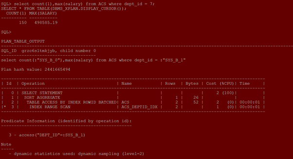 WHERE SQL_TEXT LIKE ‘%ACS where dept_id%’