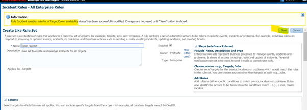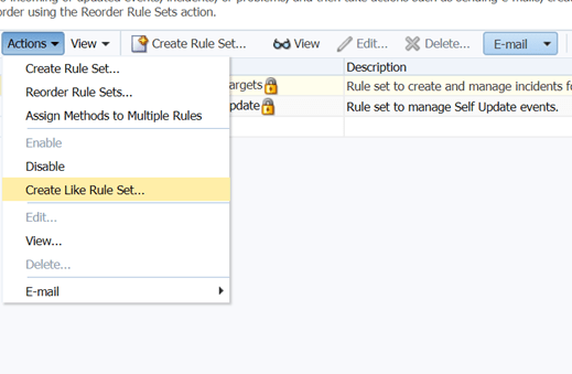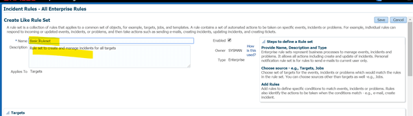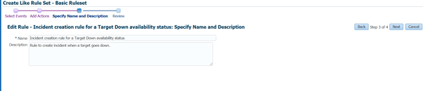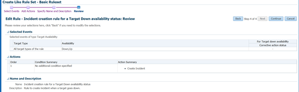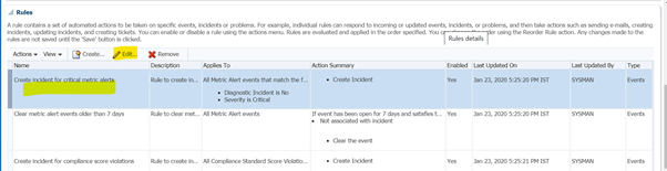 A ruleset is collection of rules. Since we used option “create like ruleset” it is showing all rules as per the original ruleset “Incident management rule set for all targets”