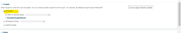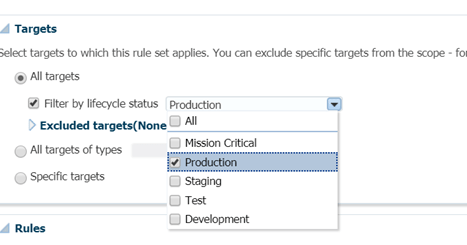 Optionally you can filter targets by Lifecycle status. E.g. I want to apply this rule only for “Production” type targets then I can select that option