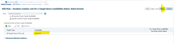 For e.g. I am editing this rule “Incident creation rule for a Target Down availability status”. Default is it will show notification only when availability is “down”. But I want notification for all event.