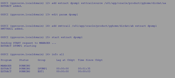 add extract dpump1 exttrailsource /u01/app/oracle/product/gghome/dirdat/aa