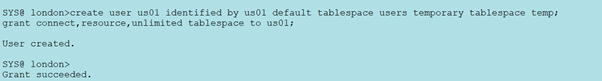 create user us01 identified by us01 default tablespace users temporary tablespace temp;