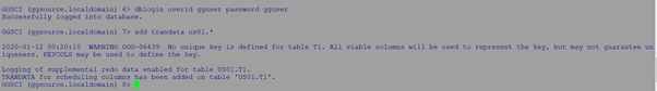Source side add trandata for particular table which we wants to replicate the data to target database. I am adding for all tables in us01 user.
