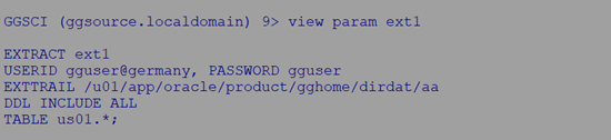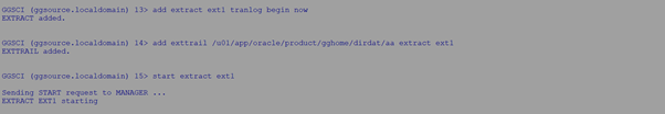 add exttrail /u01/app/oracle/product/gghome/dirdat/aa extract ext1