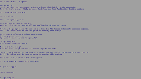 Go to GG home and login to DB as sysdba