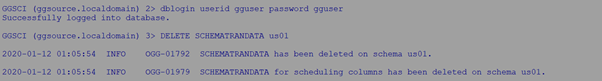 DELETE SCHEMATRANDATA us01