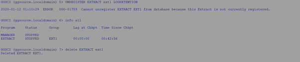UNREGISTER EXTRACT ext1 LOGRETENTION