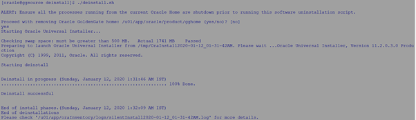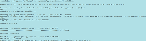 Uninstalling Oracle GoldenGate