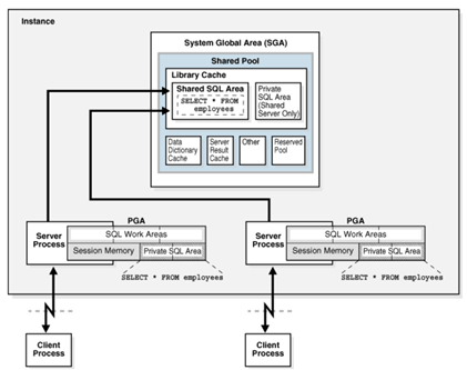 Multiple private SQL areas in the same or different sessions can reference a single shared SQL area, this phenomenon known as cursor sharing. For example, an execution of SELECT * FROM employees in one session and an execution of the SELECT * FROM employees (accessing the same table) in a different session can use the same parse tree and plan.
