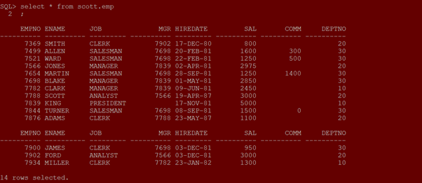 select * from Shalabh.t1 where emp_id < 50;