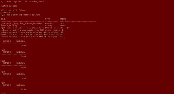 Now see what happens when cusrsor_sharing =EXACT and bind variable used in WHERE clause