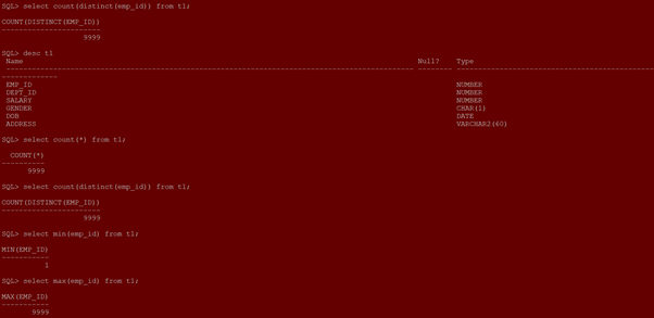 select count(1), max (SAL) from EMP where deptno =10;è extra space between select and count