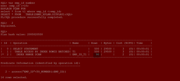 - EXPLAIN PLAN command – This displays an execution plan for a SQL statement without executing the statement.