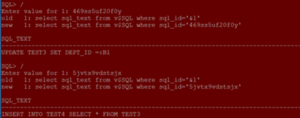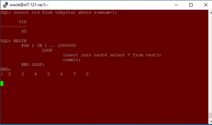- session 2 (sid =80, instance 1, select from test3 using “insert into”)