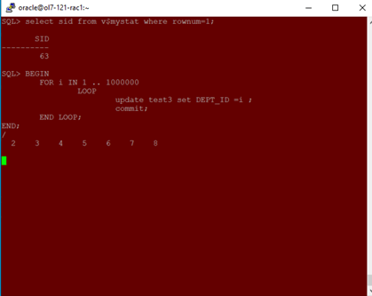 - Run update statement which will keep updating same set of rows (99 rows) of test3 table 1000000 times