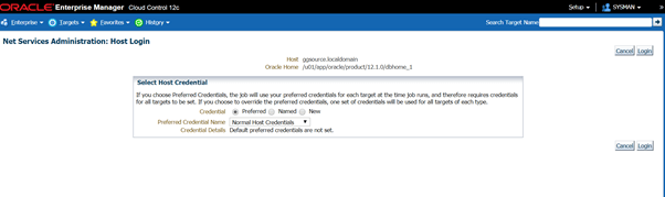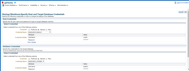 You need to provide both host and database credential. I have preferred credentials already so I will attempt startup using those. Else you need to provide new credentials.