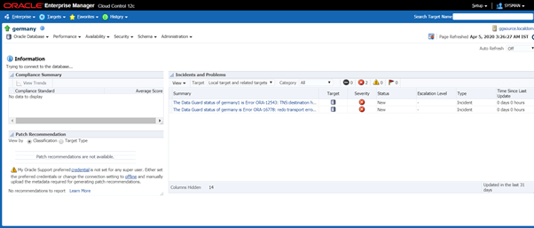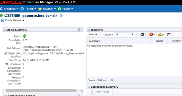 You will be taken to below page which shows that listener current state is down and you can attempt start operation. Click ok to start the listener.