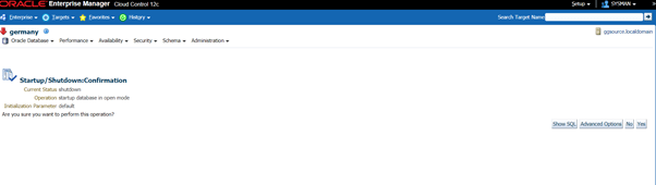 First you need to start the listener. Otherwise even after starting the database the status of database will show down. So, go to listener and click startup