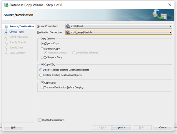 you can filteer the object you want to copy.in our case i am copying entire scott schema to scott_temp schema