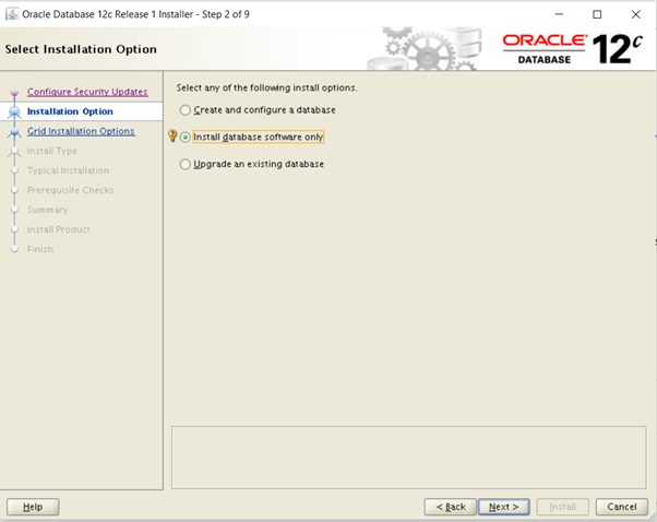 For this installation you will need 12.1.0.2 for the repository database. Do a software-only installation, as we will be using the template to create the repository database.