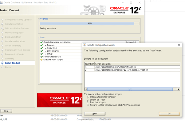 [root@oel6-rac01 ~]# /u01/app/oraInventory/orainstRoot.shChanging permissions of /u01/app/oraInventory.Adding read,write permissions for group.Removing read,write,execute permissions for world.Changing groupname of /u01/app/oraInventory to oinstall.The execution of the script is complete.[root@oel6-rac01 ~]# /u01/app/oracle/product/12.1.0.2/db_1/root.shPerforming root user operation.The following environment variables are set as: ORACLE_OWNER= oracle ORACLE_HOME= /u01/app/oracle/product/12.1.0.2/db_1Enter the full pathname of the local bin directory: [/usr/local/bin]: Copying dbhome to /usr/local/bin ... Copying oraenv to /usr/local/bin ... Copying coraenv to /usr/local/bin ...Creating /etc/oratab file...Entries will be added to the /etc/oratab file as needed byDatabase Configuration Assistant when a database is createdFinished running generic part of root script.Now product-specific root actions will be performed.