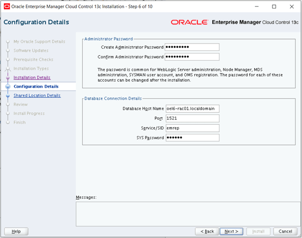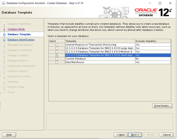 [oracle@oel6-rac01 12c_OEM]$ pwd/shared_dir/12c_OEM[oracle@oel6-rac01 12c_OEM]$ ls -ltotal 7155780-rwxrwxrwx. 1 root root 552714982 May 3 00:22 12.1.0.2.0_Database_Template_for_EM13_1_0_0_0_Linux_x64.zip-rwxrwxrwx. 1 root root 1315250699 May 3 01:03 em13100_linux64-2.zip-rwxrwxrwx. 1 root root 2145473190 May 3 09:00 em13100_linux64-3.zip-rwxrwxrwx. 1 root root 2141357330 May 3 09:11 em13100_linux64-4.zip-rwxrwxrwx. 1 root root 331590923 May 3 06:13 em13100_linux64-5.zip-rwxrwxrwx. 1 root root 841114290 May 3 00:50 em13100_linux64.bin[oracle@oel6-rac01 templates]$ cd $ORACLE_HOME/assistants/dbca/templates[oracle@oel6-rac01 templates]$ unzip /shared_dir/12c_OEM/12.1.0.2.0_Database_Template_for_EM13_1_0_0_0_Linux_x64.zipArchive: /shared_dir/12c_OEM/12.1.0.2.0_Database_Template_for_EM13_1_0_0_0_Linux_x64.zip inflating: set_repo_param_12.1.0.2.0_Database_SQL_for_EM13_1_0_0_0_Large_deployment.sql inflating: set_repo_param_12.1.0.2.0_Database_SQL_for_EM13_1_0_0_0_Medium_deployment.sql inflating: set_repo_param_12.1.0.2.0_Database_SQL_for_EM13_1_0_0_0_Small_deployment.sql inflating: shpool_12.1.0.2.0_Database_SQL_for_EM13_1_0_0_0.sql inflating: 12.1.0.2.0_Database_Template_for_EM13_1_0_0_0_Large_deployment.dbc inflating: 12.1.0.2.0_Database_Template_for_EM13_1_0_0_0_Medium_deployment.dbc inflating: 12.1.0.2.0_Database_Template_for_EM13_1_0_0_0_Small_deployment.dbc inflating: 12.1.0.2.0_Database_Template_for_EM13_1_0_0_0.dfb inflating: 12.1.0.2.0_Database_Template_for_EM13_1_0_0_0.ctl[oracle@oel6-rac01 templates]$