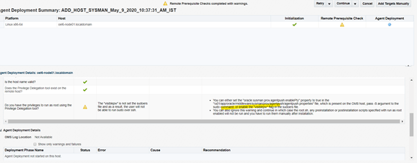 To overcome this error update /etc/hosts file of target host with details of oms host