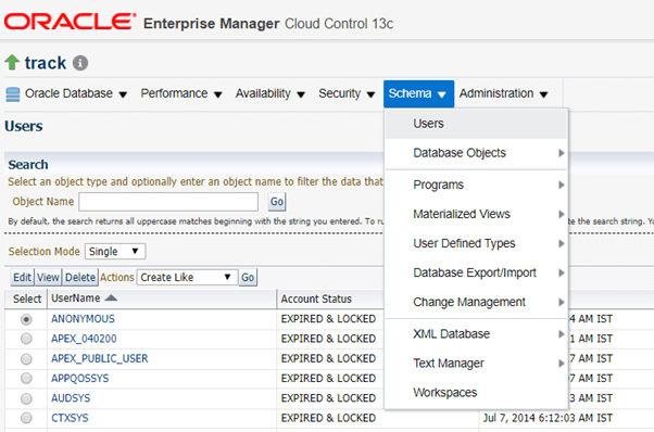 Click on users under schema tab