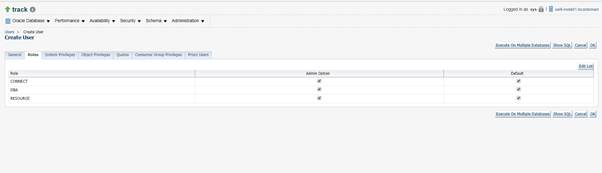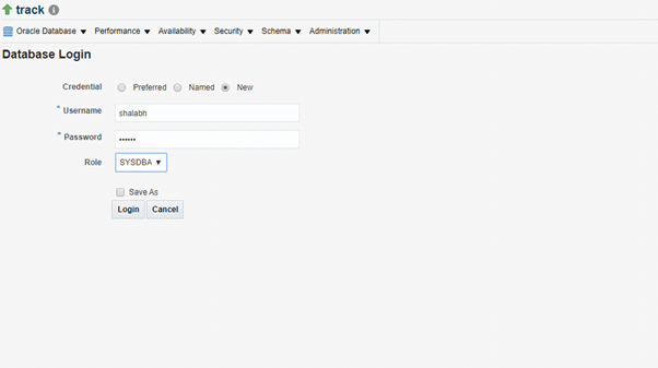 Login with new user as sysdba