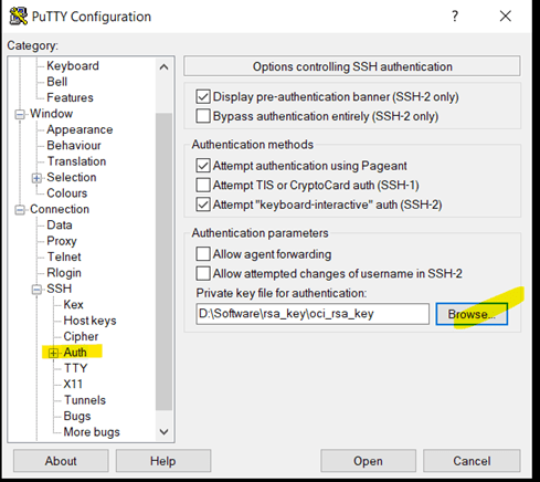 Go To Auth and upload the private key pair which was generated as mentioned in