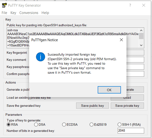 Save private key and provide new name. I am not providing pass phrase but you can provide if you want extra security