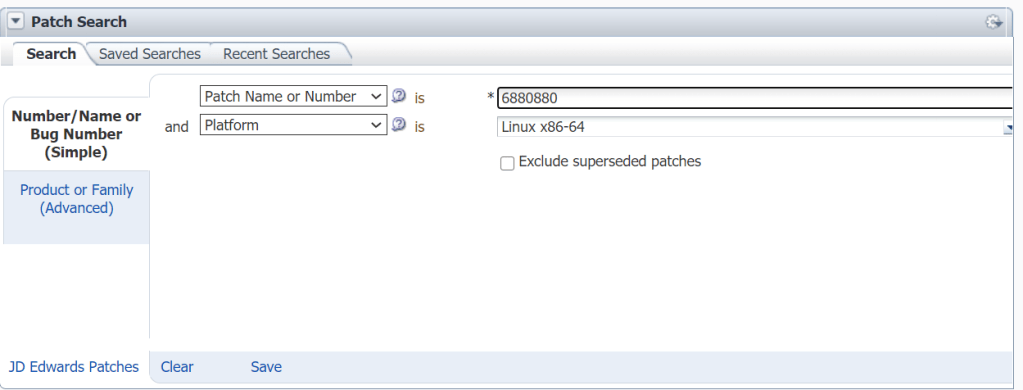 Enter the patch no. and platform and click search.