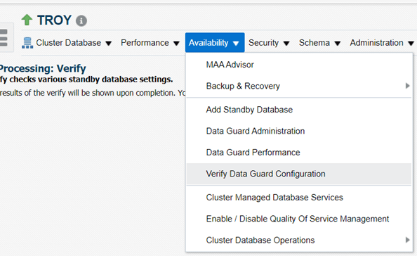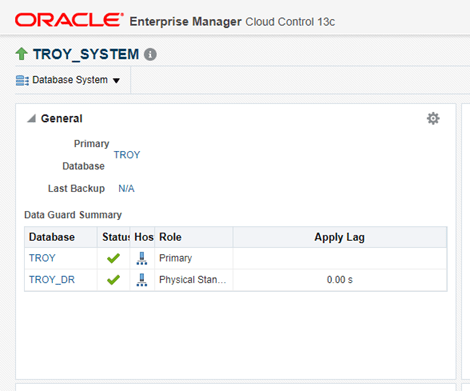 you can go inside database system TROY_SYSTEM and see the dataguard configuration