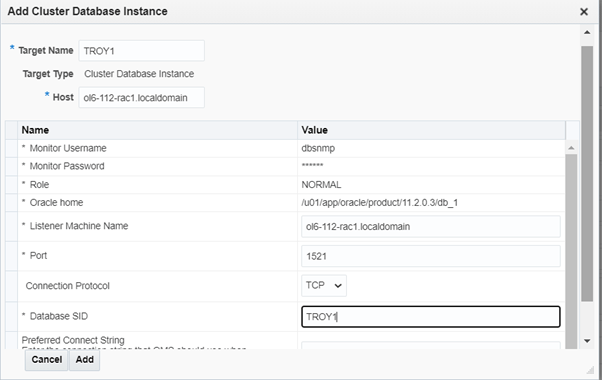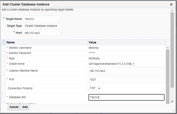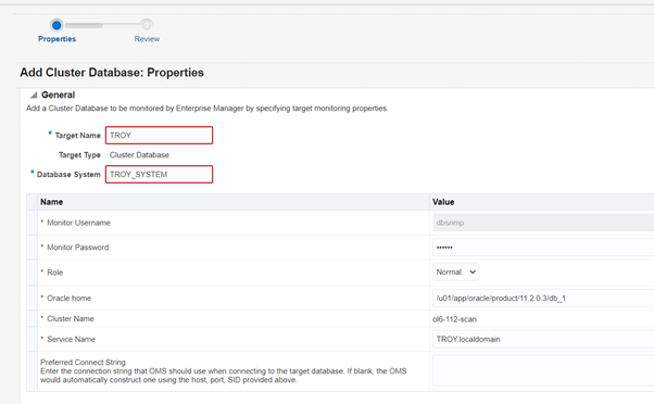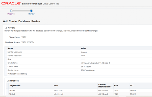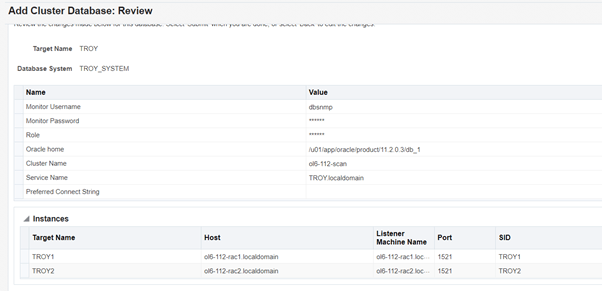 Note that we gave different database system while adding but at the end it got added in TROY_SYSTEM automatically