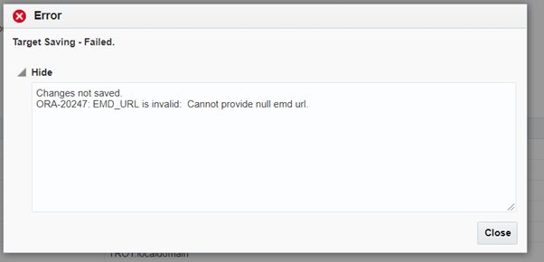 ORA-20247: EMD_URL is invalid: Cannot provide null emd url.