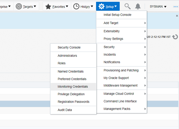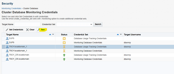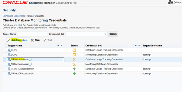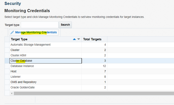 We want to set credentials for cluster database right now. So select cluster database and click on manage monitoring credentials