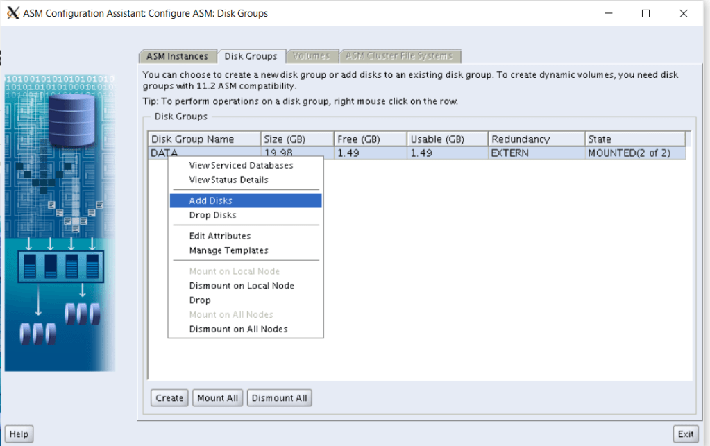 SQL> ALTER DISKGROUP