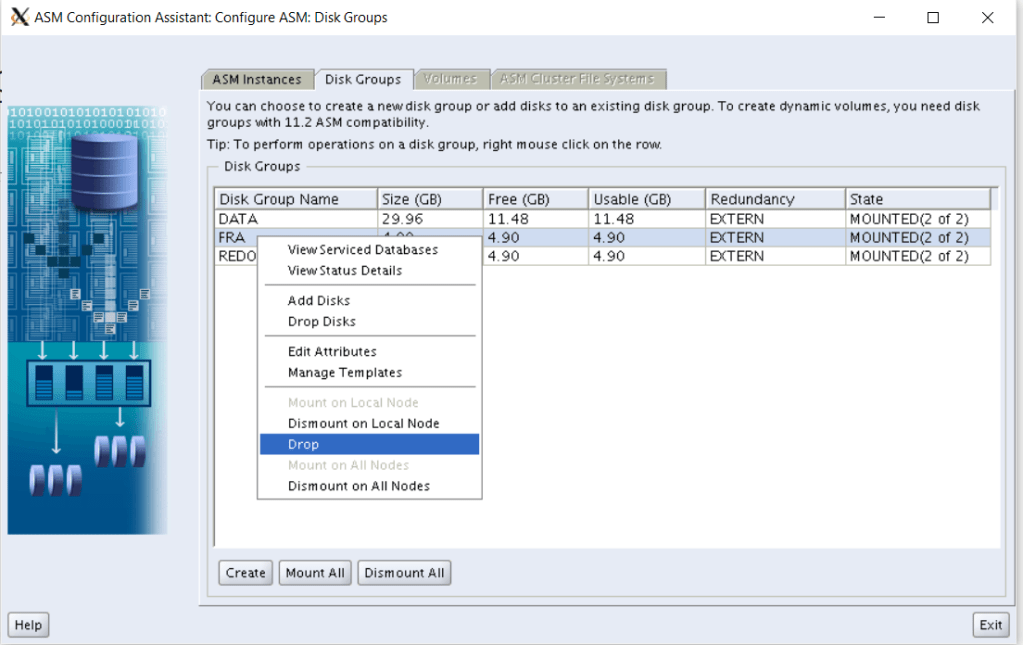 COLUMN disk_group_name FORMAT a20 HEAD 'Disk Group Name'