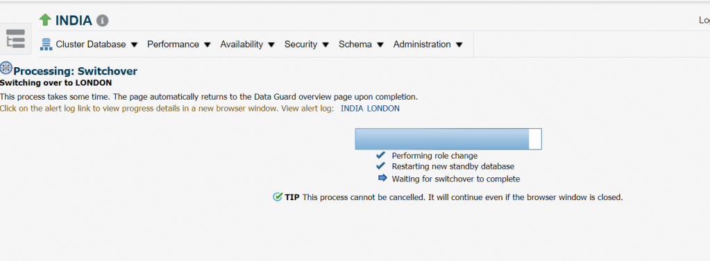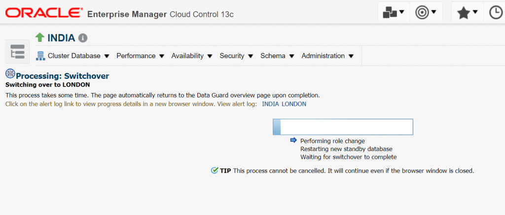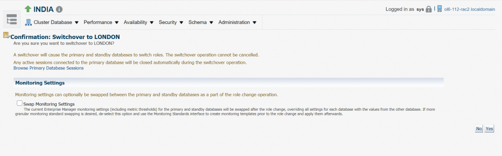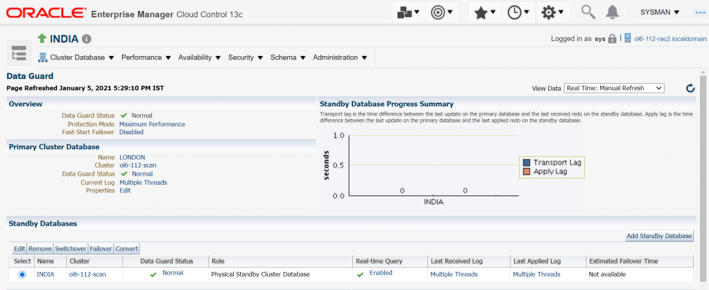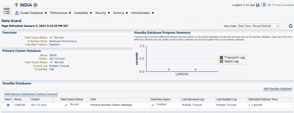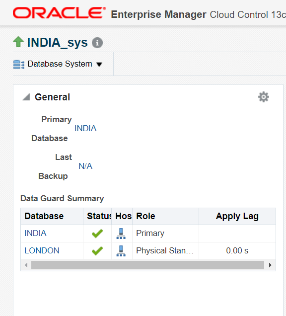 if you go inside INDIA_sys you can see the current dataguard configuration