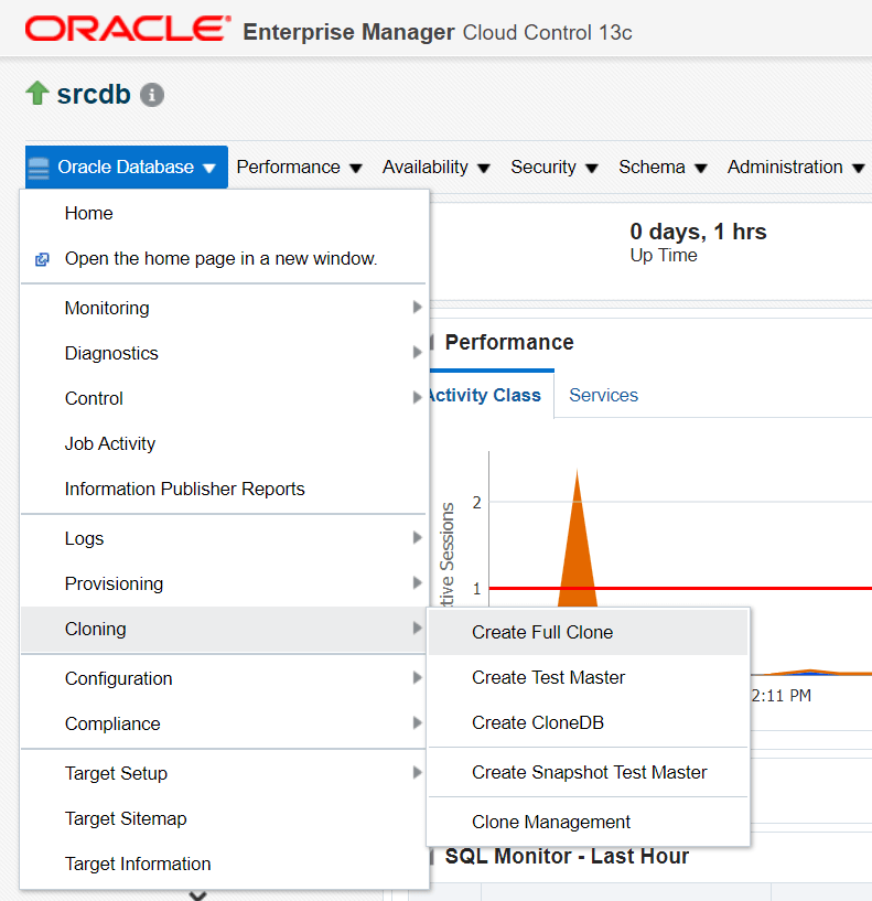 go to database instance and click on create full clone