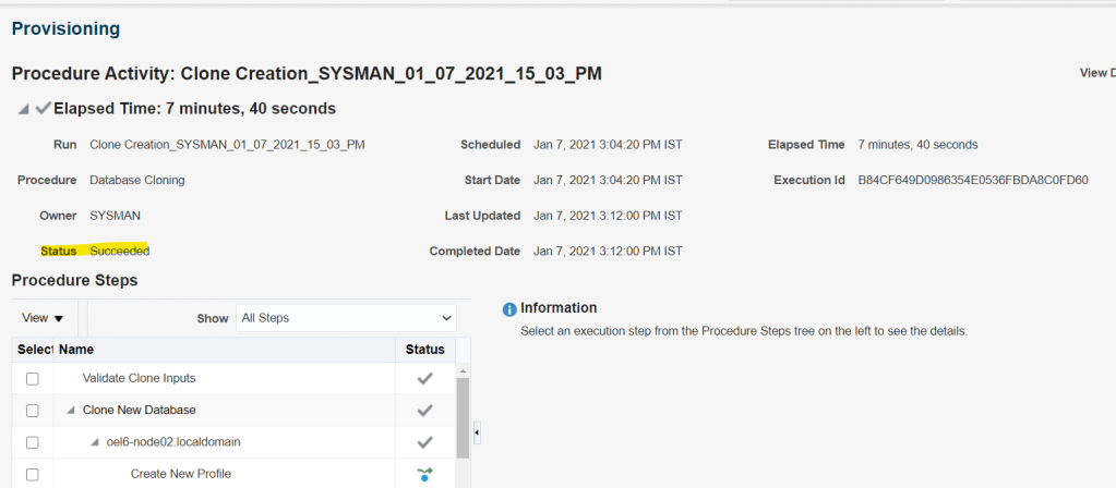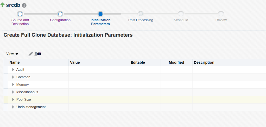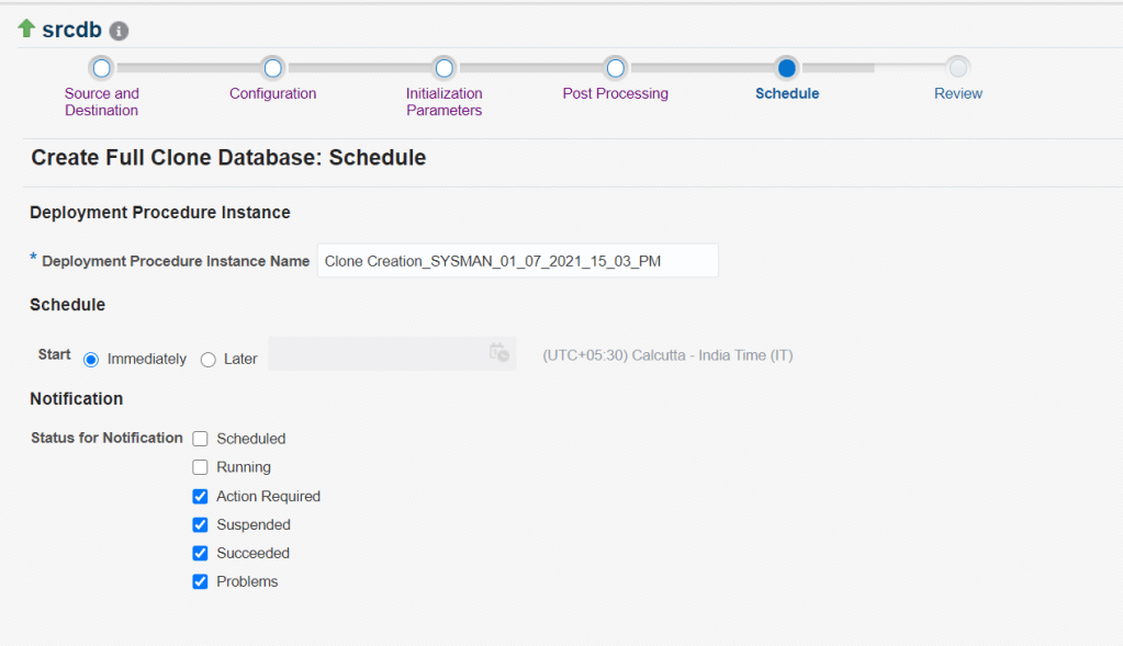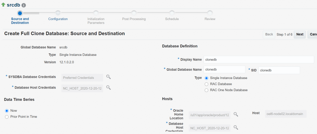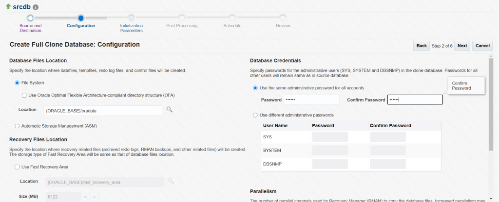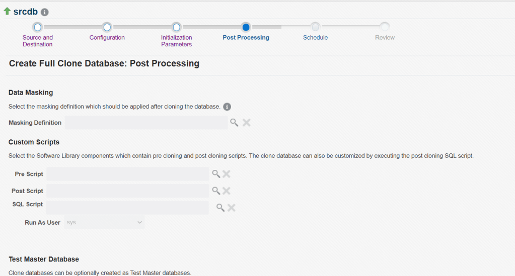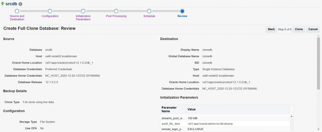 here we are clonning the database srcdb and creating a new database clonedb