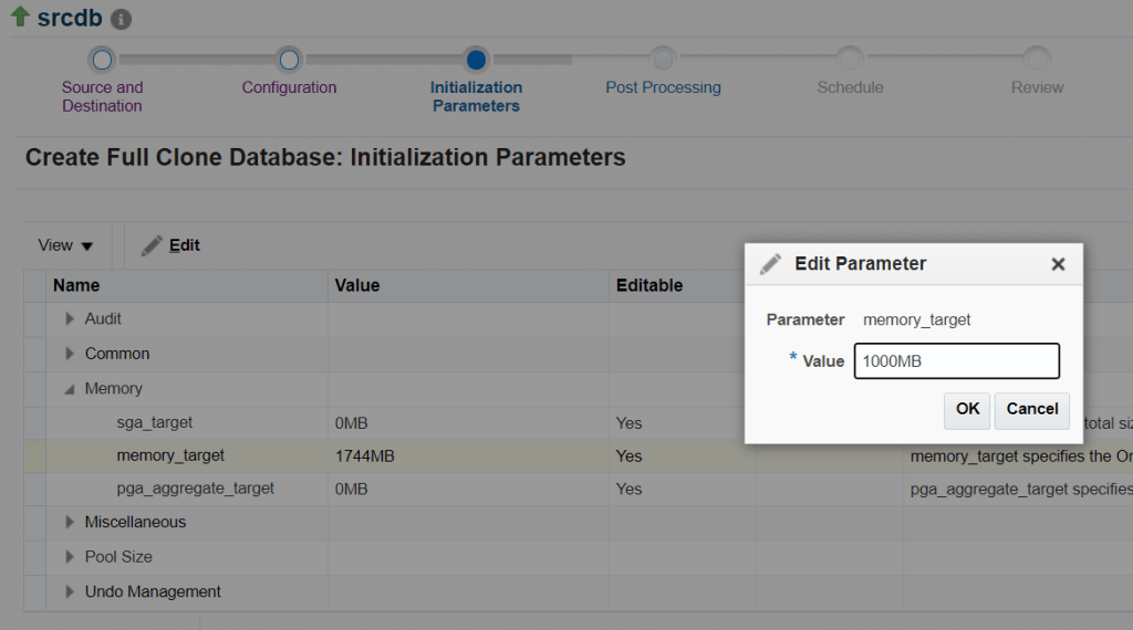 i am editing memory_target from 1744 MB to 1000 MB. click ok