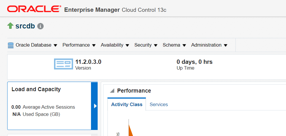 login to oem and go to database which need to be upgraded. As we can see it is currently on 11.2.0.3 version