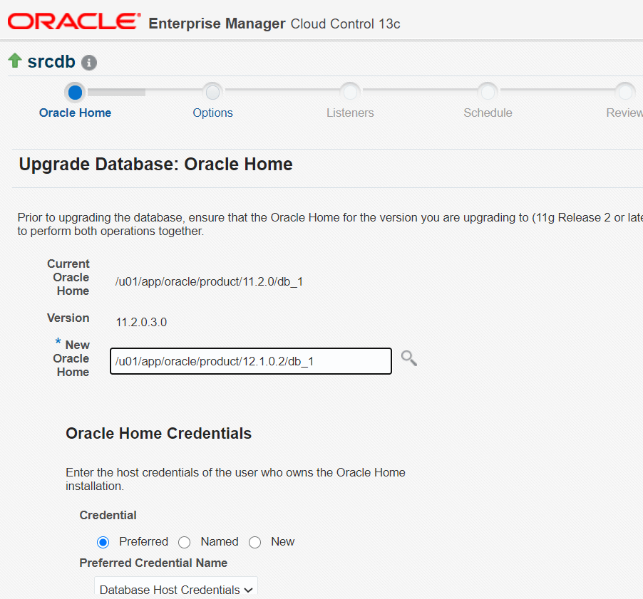 provide 12c OH details which was installed as a prerequsite and give host credetials which is is the owner of database and OH (oracle in my case). click next
