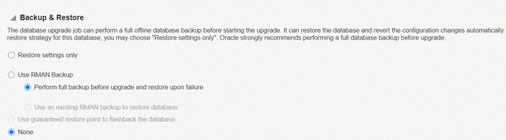 i don’t want to take backup so selected none