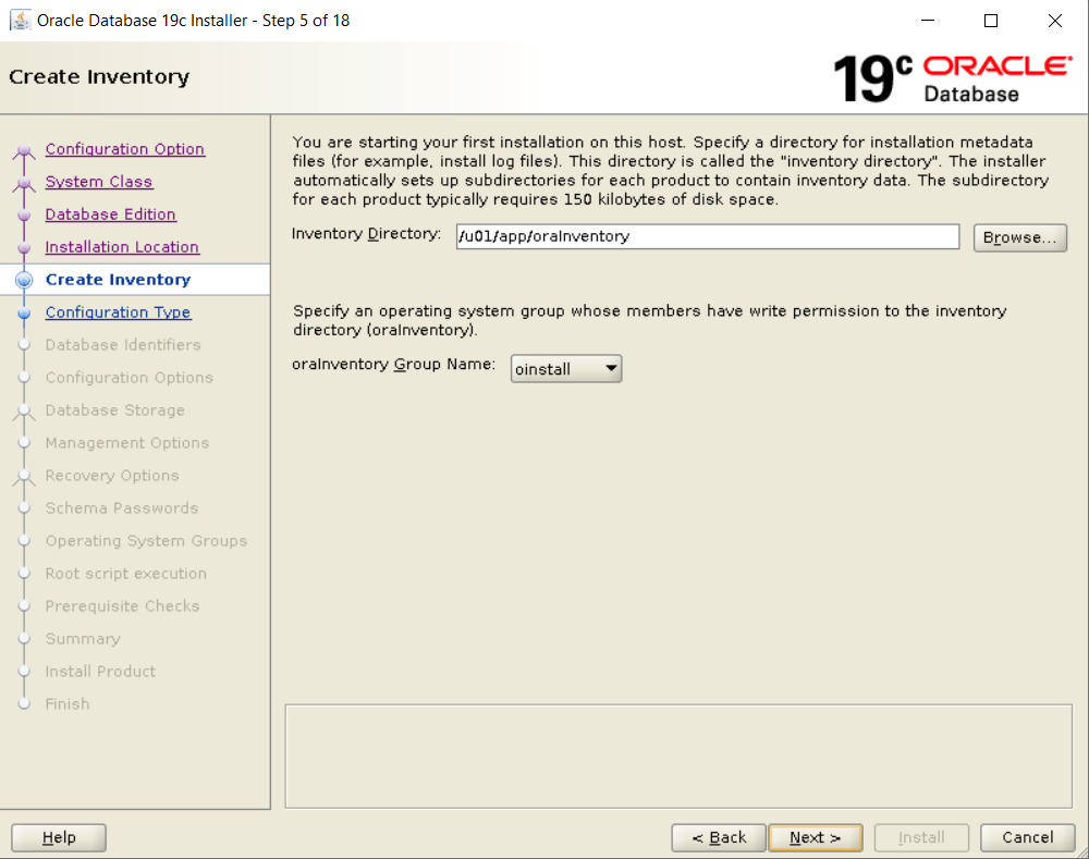 Changing groupname of /u01/app/oraInventory to oinstall.