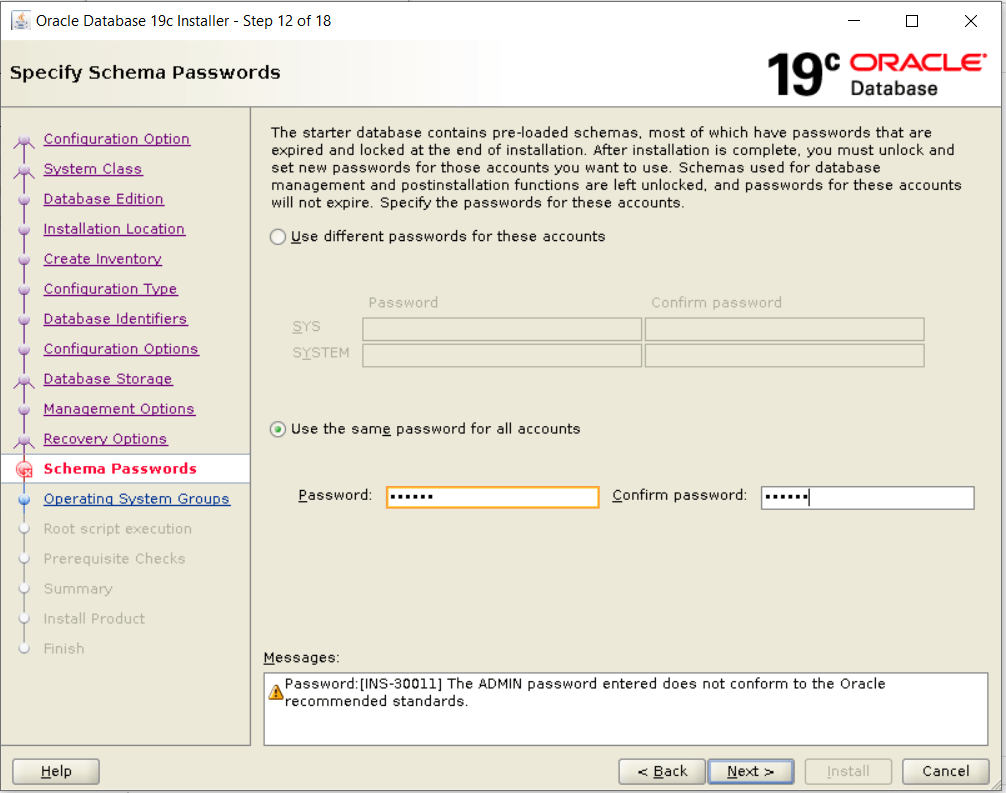 set password for oracle user