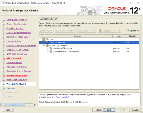 2021/10/07 19:19:59 CLSRSC-363: User ignored prerequisites during installation