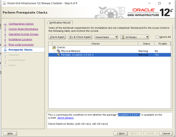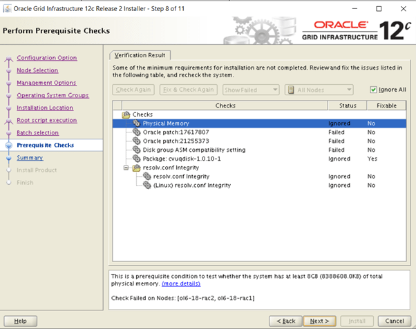 Verifying Physical Memory ...FAILED (PRVF-7530)