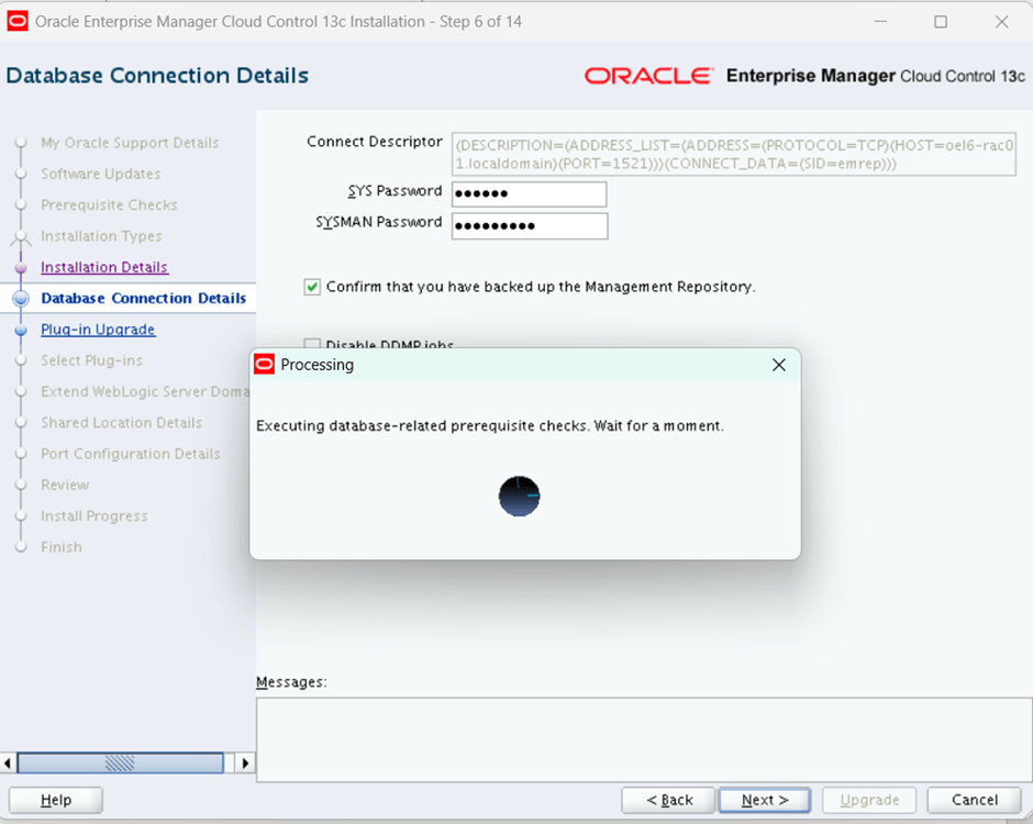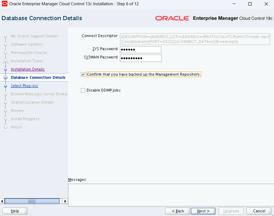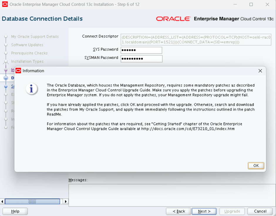 provide sys and sysman password for exiting oem and repo database